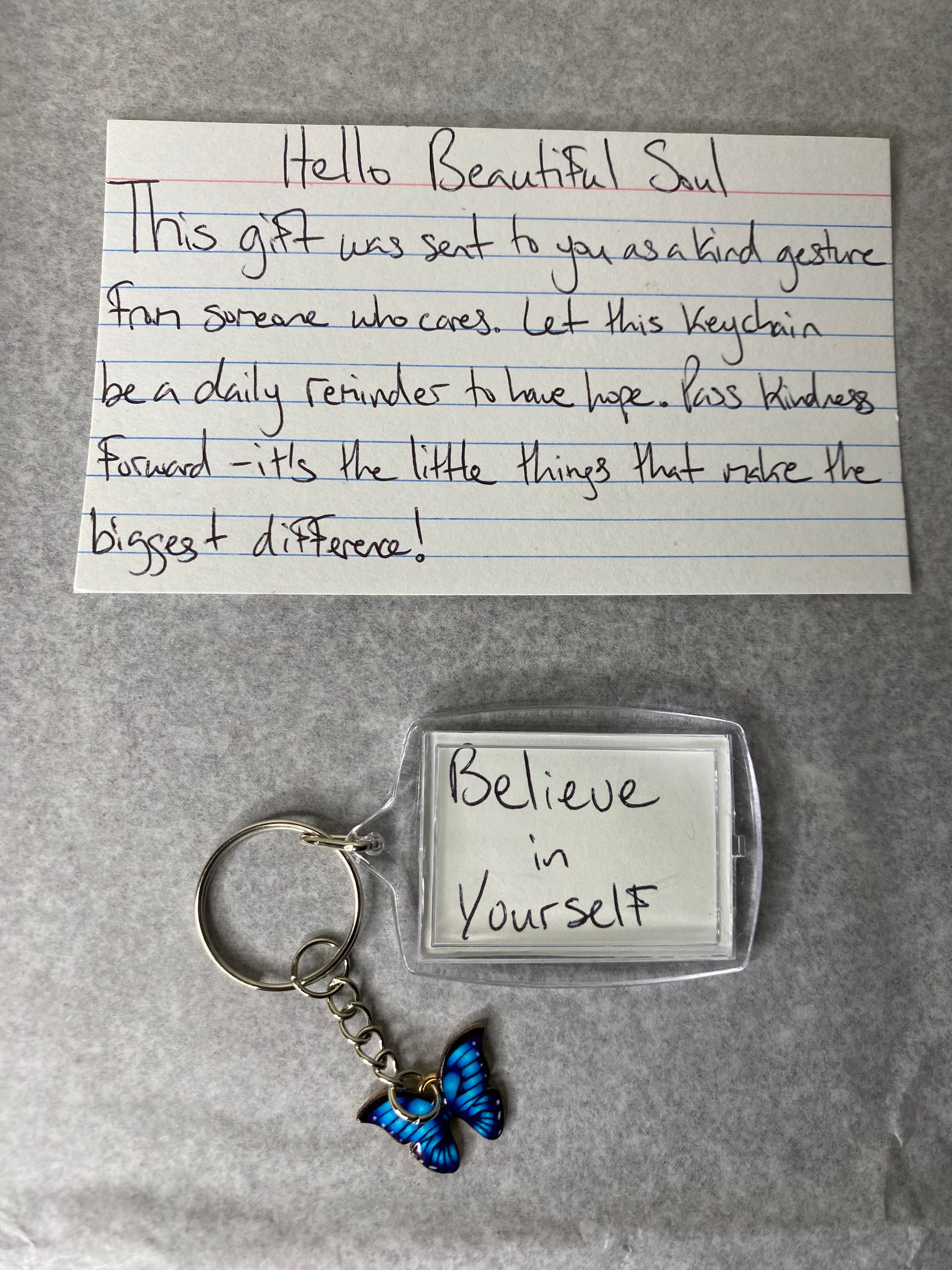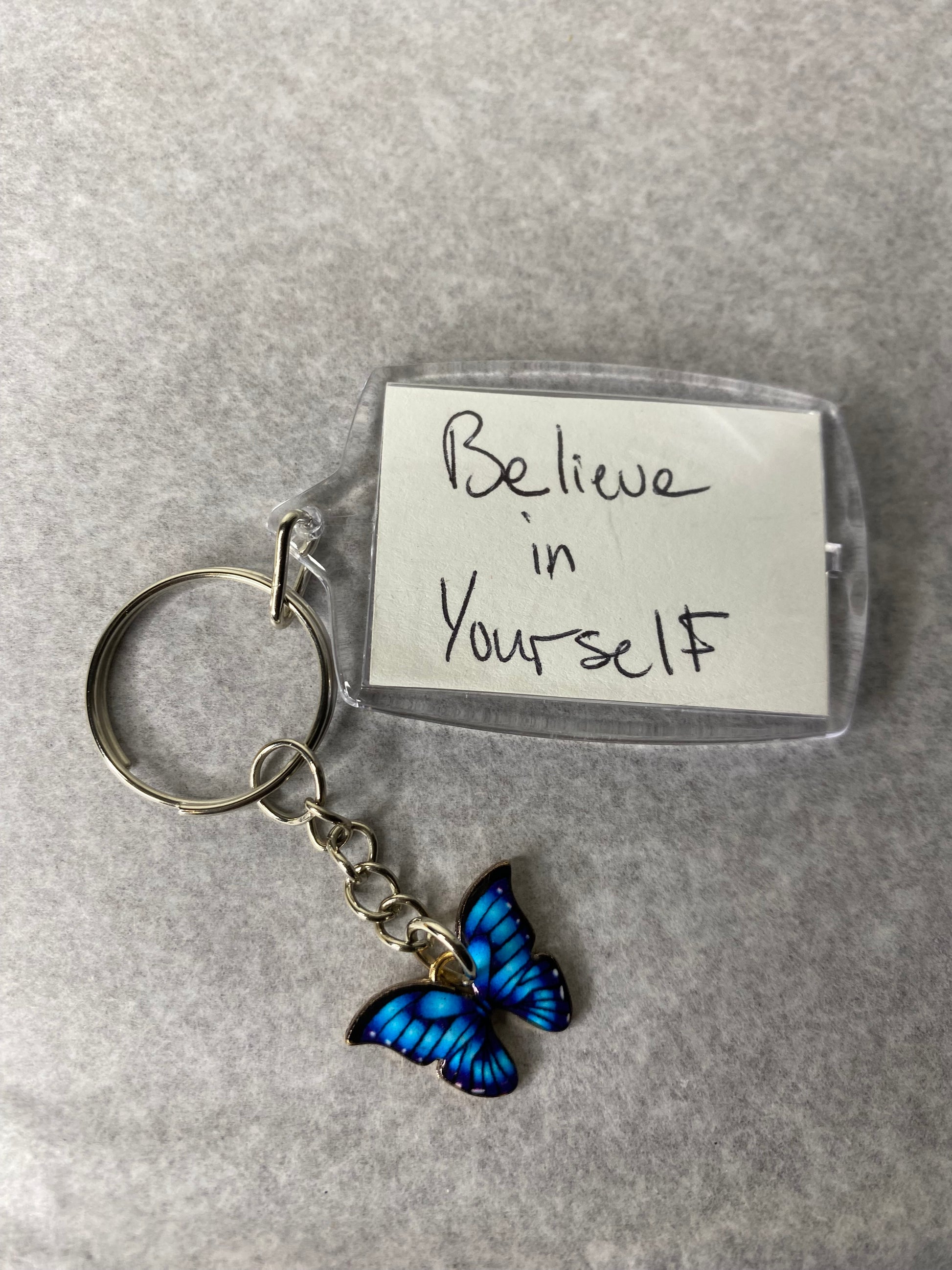 A daily affirmation to trust in your abilities and embrace your inner strength. This 'Believe in Yourself' keychain features a delicate butterfly charm which serves as a constant reminder to have confidence and pursue your dreams. Carry it with you to inspire self-belief, or gift it to someone who could use a boost of encouragement.