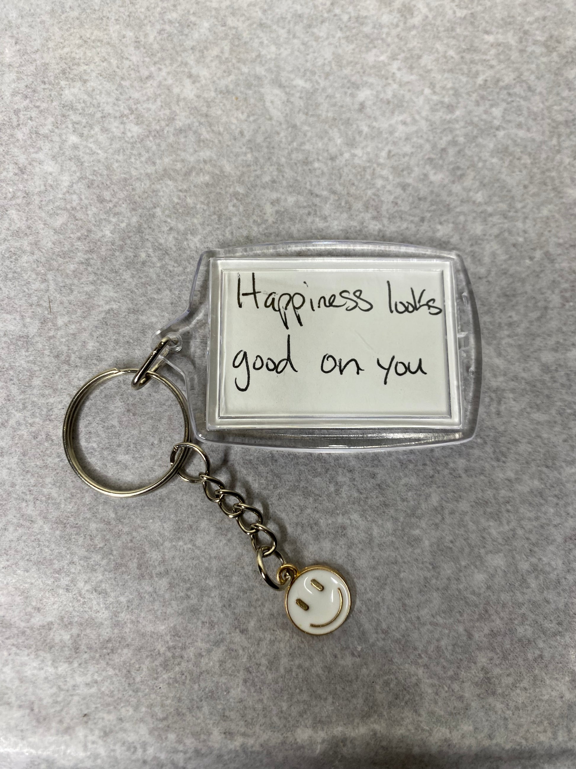 A sweet reminder that joy is your best look! This 'Happiness Looks Good on You' keychain features a cheerful smiley face charm, symbolizing positivity, confidence, and self-love. Carry it as a daily boost of encouragement or gift it to someone who shines even brighter with a smile.