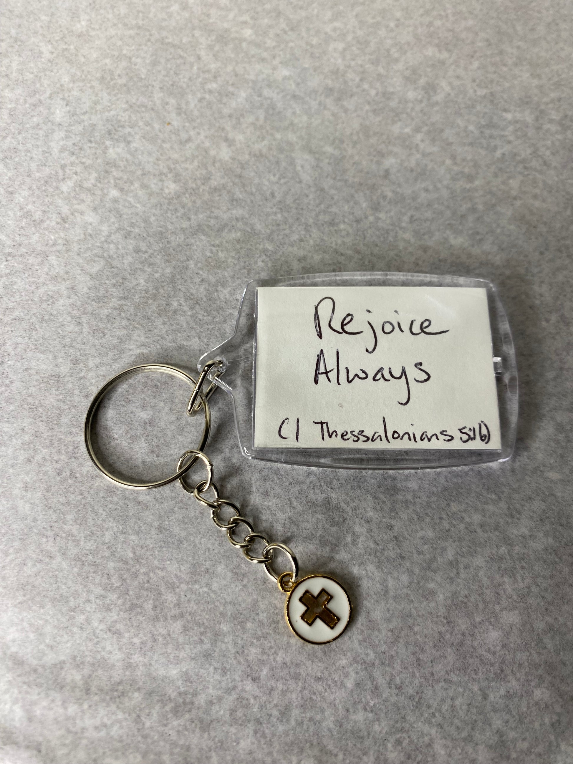 A reminder to find joy in every moment. This 'Rejoice Always' keychain features a delicate cross charm, symbolizing faith, gratitude, and unwavering hope. Carry it as a daily encouragement to stay positive through life's ups and downs, or gift it to someone as a symbol of joy and faith.