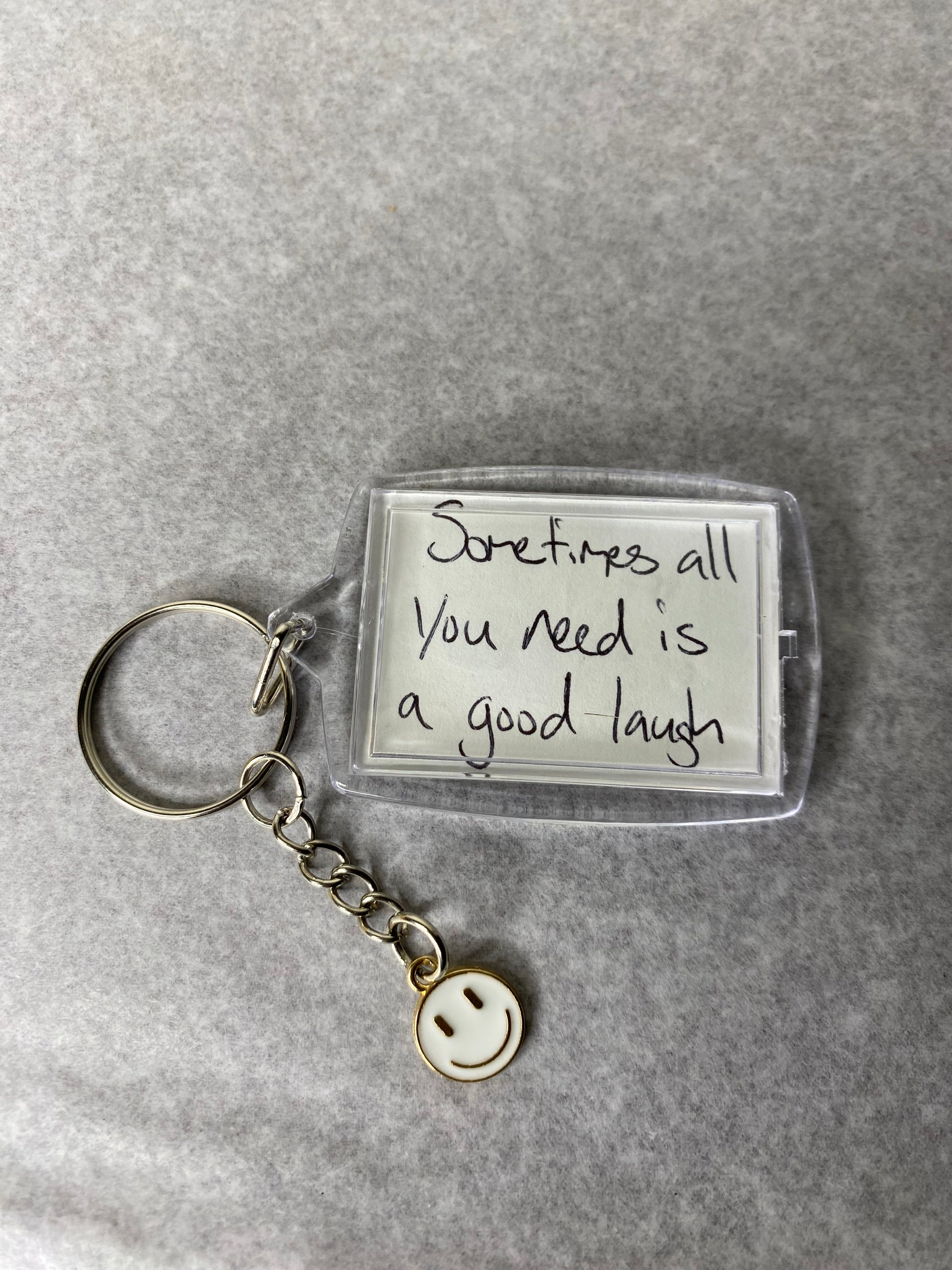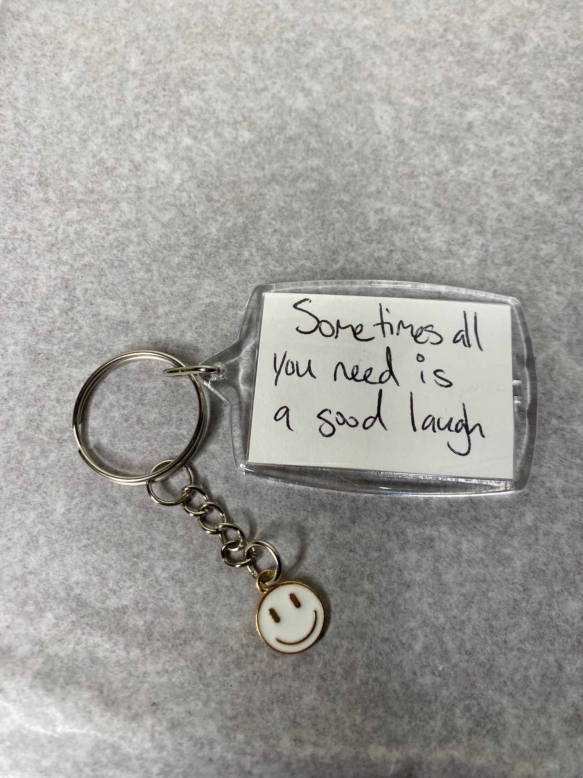 A little reminder that laughter is the best medicine. This 'Sometimes All You Need Is a Good Laugh' keychain features a cheerful smiley face charm, symbolizing joy, positivity, and lighthearted moments. Carry it as a daily nudge to smile, let go, and enjoy life or gift it to someone who always knows how to brighten your day.